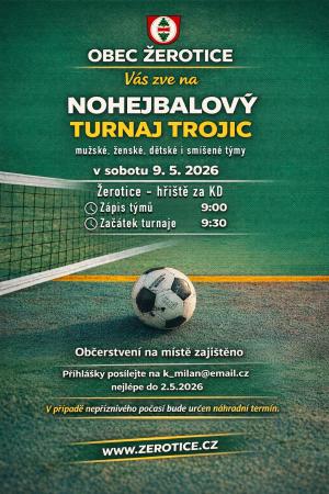Nohejbalový turnaj trojic 9.5.2026 od 9:00, Žerotice, hřiště za KD